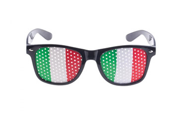 - Occhiali decorati con adesivi della bandiera italiana applicati direttamente su di essi